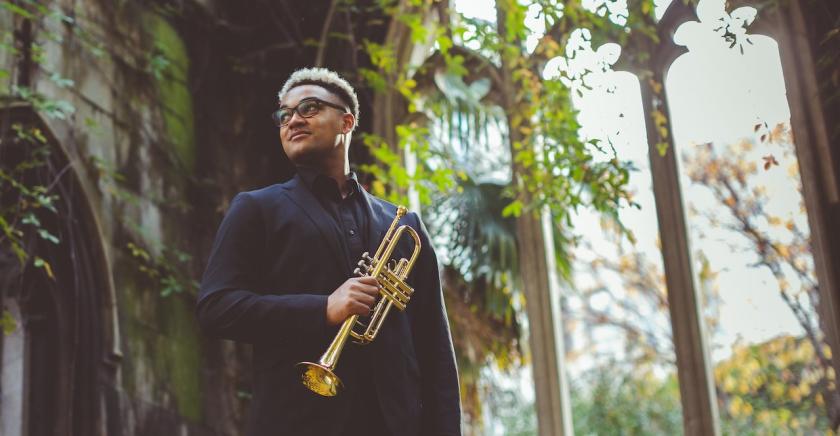 Harpist demonstates his instrument has attitude and soul to match trumpeter's liquid gold