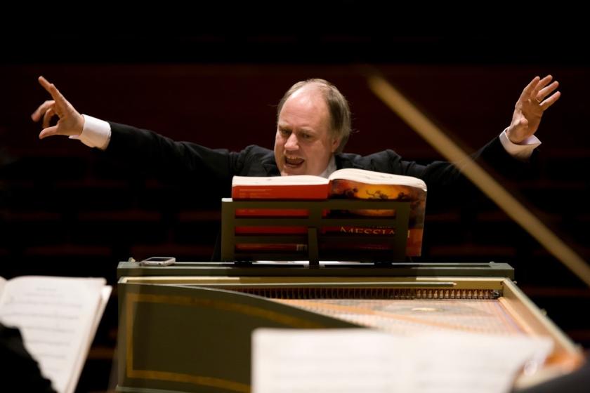 To follow, an oboe d’amore concerto by Bach. The work, BWV 1055, has come down to us as a harpsichord concerto, but all the evidence suggests that Bach originally wrote it for oboe d’amore, and so this performance was a reconstruction. Soloist Alexandra Bellamy faced stiff challenges in presenting such intricate and freely flowing music on an instrument with a narrow, nasal tone, and little keywork to assist with articulation. Here and elsewhere in the programme, John Butt resisted the temptation to push the tempos, but even so, Bellamy seemed constrained by the unbending tempos in the outer movements. Some of the passagework seemed to be at the limit of the instrument’s abilities, but Bellamy was able to skilfully shape the phrases, in spite of occasional squeaks and pops. The slow movement was played slowly but with real intensity by the ensemble, and matching that sound and stamina was another challenge for Bellamy, achieved, but not without effort.