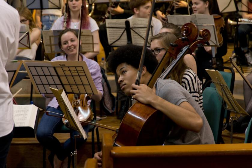 Those strings, for a start: no orchestra sets out into the woods of Mendelssohn's A Midsummer Night's Dream Overture without some discipline and ability to master its flitting fairy music. These violins absolutely could, precise from the start, and there were even artistically portamento-d "hee-haw"s in the rude mechanicals' bergomask dance. The strings' buoyancy in Haydn's C major Cello Concerto was almost as much of a delight as Kanneh-Mason's playing (the cellist pictured above with the orchestra in rehearsal), and he acknowledged it by stepping back into what amounted to an obbligato role in the finale, keeping it light rather than showy.
