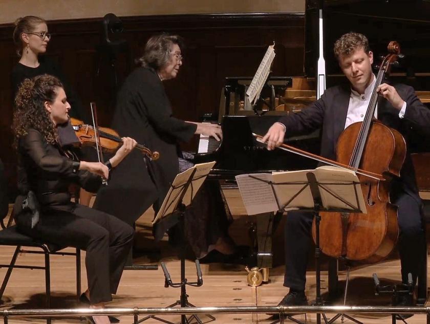It isn't clear which of the two trios was composed first, though both appeared on the public scene in the last year and a bit of Schubert's short life. Evidently, though, the numbering means that the panoramic E flat major glory should follow the more modest, but still unmistakeably late-Schubert D.898. The third theme of its otherwise blithe first-movement exposition suddenly points to the open grave; it was handled with typical subtlety by the trio, ever so slightly different second time around. And Várdai sang his Andante melody with perfect poise; there's never excess sentimentality with these players, only exquisite grace counterpoised with a more Promethean aspect in which Leonskaja gives the lead. Her bigger, more bass-freighted chords were perfectly weighted, never overdone but not discreet for the sake of the strings, either; and in flyaway right-hand filigree she showed her mastery of Schubert's more intimate side.