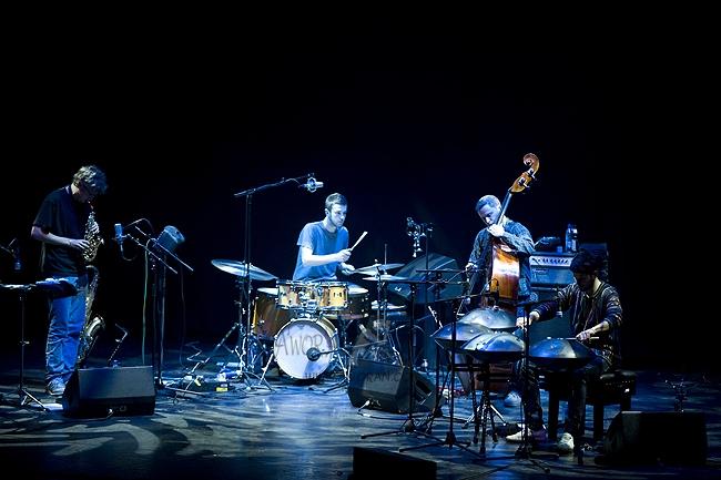 Their jaunt around the UK was a joint headline tour, requiring each group to alternate top billing. It fell to Portico Quartet to open last night, which meant a shorter set that perhaps didn’t allow them time to settle in and stretch and breath as they might have otherwise. Their line up consisted of tuned Hang drums, saxophones, double bass and drums, with various electronic textures – a spacey dub effect here, some loops there – selectively painted in. The results nodded to a working knowledge of the wider world of contemporary music which informed their pieces without ever threatening to unbalance them.