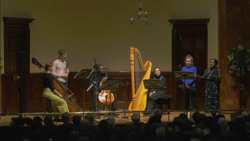 The final item was The Linden Tree, a composition by the jazz bassist Mishal Mullov-Abbado, arranged by Tom Parker and Amy Vanmeenen. In this pleasingly mellow finale, Oliver Pashley established the theme on the clarinet, which was subtly amplified on the harp before Marianne Schofield introduced a staccato rhythm on the double bass. Werner’s voice was more plaintive here as she sang from the old folk song, while the clarinet introduced more jazzy elements against a ripple of chords from the harp. In a beautiful improvisatory interlude, Selaocoe seemed to weave subtle ribbons of notes into the growing tapestry of sound, before Werner took the helm again and gently guided us towards the plangent finale.
