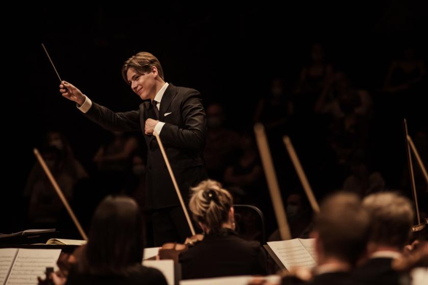 KLAUS MÄKELÄ Thank you very much for watching that. It felt really a bit unreal, I think it was my third week of life after the restart; the first one was in Hamburg's Elbphilharmonie at the beginning of June, I think that was one of the first concerts, no audience, 27 musicians playing Schoenberg’s Verklärte Nacht with three metres between each, and then I did something in Munich for 100 people, in the Gasteig, which is also huge, that felt different, and then to come to Paris with more than 1000 people in the audience, it felt so unreal, absurd [Pictured below by Marco Borggreve: Mäkelä condiucting the Oslo Philharmonic in an early time of full audiences]