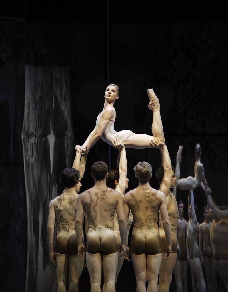 The sharpest section was all-girls, with Melissa Hamilton in sinewy stride as Diana bathing among her nymphs, and then ascending in moon shapes in the hands of her attendants, wiggling her toes invitingly. None of the choreography has much of the fleshiness of Titian upon it. That comes from the fleeting shape-making of moon-horns and stag-horns, and from the music. If Muhly’s score is “ballet" music, underpinning Machina's elements, Turnage’s demands centre-stage. It's not dansante in physical terms but it’s compellingly virtuosic, a dance upon the ear with big handfuls of yummy textures, chandeliers of high Britten-ish arpeggios, sustained string incantations, rhumba beats, tangos and some kind of zither among a blizzard of atmospheric effects.