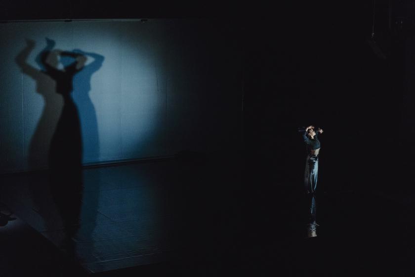 The show starts with a blackout, a blackout so complete it feels alarming. A single guitarist, dimly visible, plucks a fierce repeated octave, and when Molina appears distantly through the gloom, after what seems an age of waiting, she does virtually nothing. The glimmer of her black satin sheath of a skirt is all that tells us she is still in the building. What are we waiting for? Who knows? Perhaps she is playing tricks with us. Our ears tell us she is scraping slow circles with her steel toe-cap, a traditional indication that a flurry of rapid-fire zapateado is imminent, but that doesn’t happen. The darkness and the scraping persist.