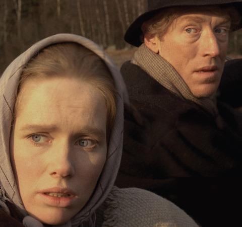It is 1844 in Sweden’s Småland province. Karl Oskar Nilsson’s farmer father injures himself trying to move one of the many boulders which punctuate their barely fertile farm. Karl Oskar (Max von Sydow, pictured right) takes the farm over and soon marries Kristina (Liv Ullmann, pictured below left). They and their neighbours – some relatives, some not – are increasingly worn down by Sweden’s ingrained caste system and their hard, unfulfilling, unproductive life. Effectively serfs, none are going to rise through society and ever improve their situation. A consensus is arrived at: they will emigrate to America (their group is amongst the 1.3 million Swedes who would do so). Once there, they make for Minnesota, put down roots, live their lives and improve their lot against enormous odds. The plot outline suggests a dull, worthy history lesson. In execution, it transfixes.