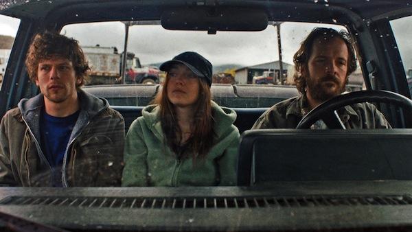 Heard but not seen, their success results in an unanticipated catastrophe that affects each of them in different ways. This allows Reichardt and her writing parter Jonathan Raymond to meditate on the ethical conflict between the three's sympathetic righteousness – encapsulated in Josh’s contempt for a society that’s “Killing all the salmon just so you can run your fucking iPod every second of your life” – and its perilous extremism. Frustration, which unites all of Reichardt's protagonists, is the filling station on Josh and Dena's road to perdition. (Jesse Eisenberg as Josh, pictured above.)