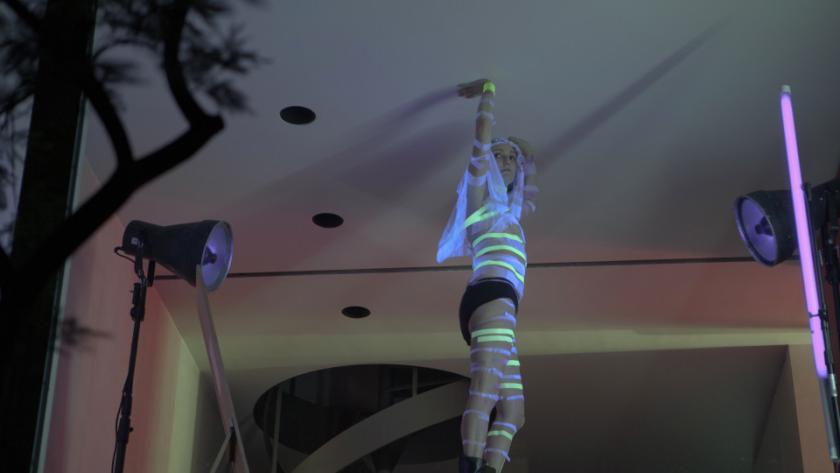 During their working hours at least they live compartmentalised lives: her behind a sliding door where we see her experiment with poses; him in a small, more conventional office, usually facing a laptop. They communicate via an intercom, sometimes lovingly and sometimes they squabble and throw each other off their respective artistic strides. They lead an enviable, unusual life – and this is a rare, authentic-seeming glimpse into the world of the creative – however Hogg also utilises just what makes them remarkable to illustrate how relationships exist in a shared but divided, and sometimes even guarded space - how relations can fluctuate not just over the long-term but from hour to hour, slave to our moods and frustrations (be they artistic or otherwise).
