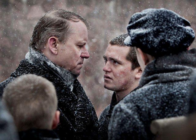 Bastøy is run by Bestyreren, played with ice-block rigour by Stellan Skarsgård. He says “discipline without compassion is cruel”. One boy has been on the island for six years. He stole from a church collection box at age 11. The governor is all about rules and order, but is revealed to have a tortured relationship with his younger wife, who lives on the island with him – she roams free with her dogs. Day-to-day affairs are handled by the fearsome Bråthen (Kristoffer Joner). He also has a secret. He’s sexually abusing vulnerable children, the discovery of which leads Erling to give the other boys the courage to fight back.