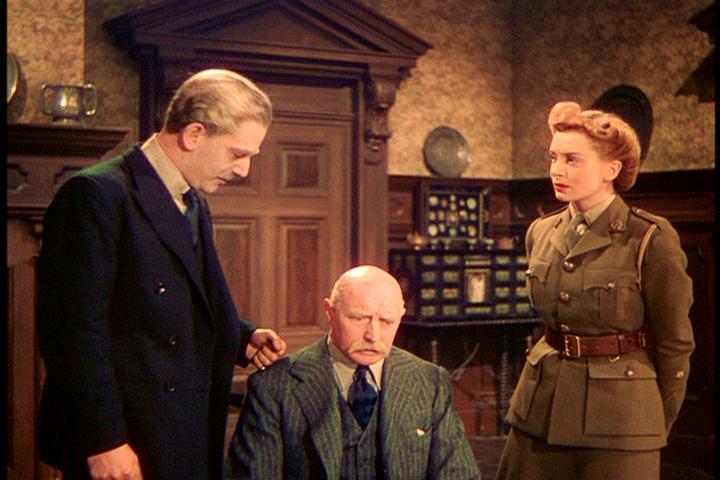That’s a lot of “isms” already, so one more, High Toryism, won’t go amiss. Traditional conservatism, characterised by paternalism and noblesse oblige, is espoused most completely in Powell and Pressburger’s oeuvre by Clive Wynne Candy (Roger Livesey), Blimp’s upper-class English imperial officer who has to learn the harsh lesson that his honorable way of fighting, based on his experience as a VC-winning subaltern in the Boer War and as a brigadier on the Western Front (Livesey pictured below with John Laurie), is next to useless in the era of Nazism and total war.