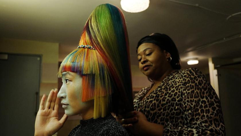 Thomas Hardiman, in his first feature, partners with ace cinematographer Robbie Ryan (The Favourite), letting the camera snake through the labyrinthine hallways of the competition hall. The players are locked in, literally and figuratively, to this fuchsia and neon-green world. Time and space are compressed: Medusa Deluxe appears to unfold in one take (editor Fouad Gaber deftly conceals the snips). But when Mosca’s weeping partner (Luke Pasquelino) and baby arrive, the film shakes out its curls and reveals undertones of grief and real peril. For a brief, unsettling moment, models and stylists ponder the mirrors that surround them, and us. Reflection is as dangerous as a sharp pair of shears.