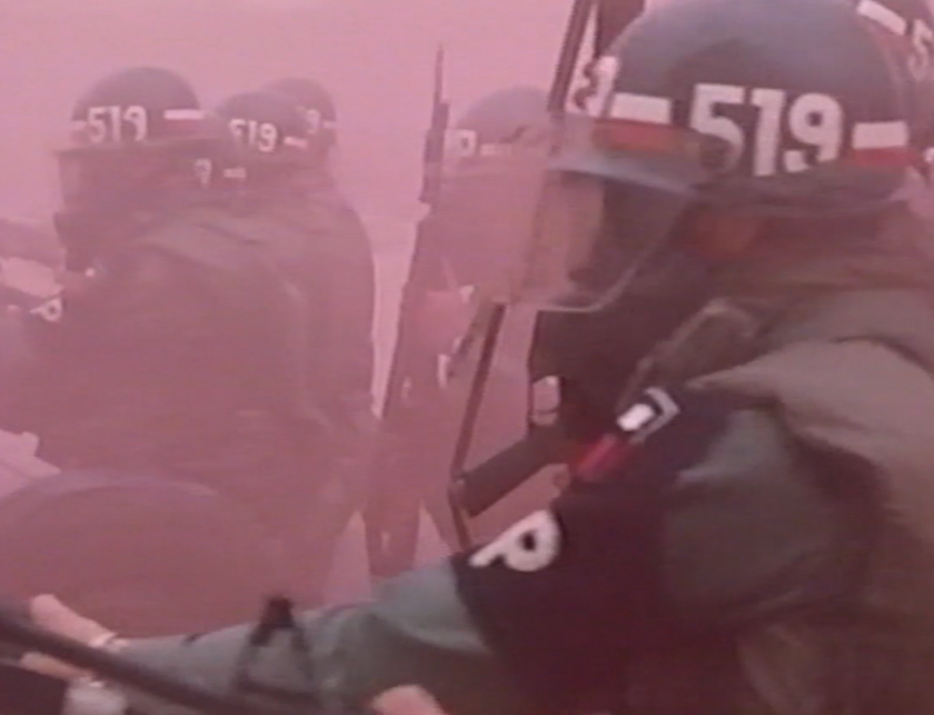 Its title comes from the nickname given to old military bases converted into training sites for civil disorder control. This initiative was a response by President Johnson to the riots in LA’s Watts district in 1965, Chicago in 1966 and Newark, Detroit and 100 other US cities in 1967. In a solemn TV address to the nation, we see him calling for a special advisory commission to attack the “conditions that breed despair”.