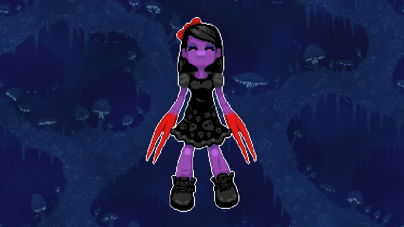 They Bleed Pixels, the new game from indie developers Spooky Squid, is a traditional platformer that serves up more splat than a hamster in a microwave. Upon arriving at the school, your character is mysteriously cursed by an evil book, and finds herself transforming into something distinctly crustacean. As you frenetically traverse the 11 platform levels of your character’s nightmares, you find you can utilise these grotesque crab claws in order to deal with the various monsters that assail her. And surprisingly, with the use of a single-button combat system, you discover there are oh so many ways you can dispatch them.