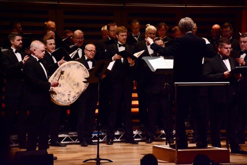 One of the singers smashes out a jittery pulse on a shaman drum and the 50-strong choir intone a chant, while at the front a tenor who looks like a doorman you wouldn’t mess with spits out what sounds like a threat from between gritted teeth. It is the Estonian National Male Voice Choir performing Veljo Tormis’s Raua needmine (“Curse Upon Iron”) and it is utterly entrancing, invigorating – and just a little bit scary.