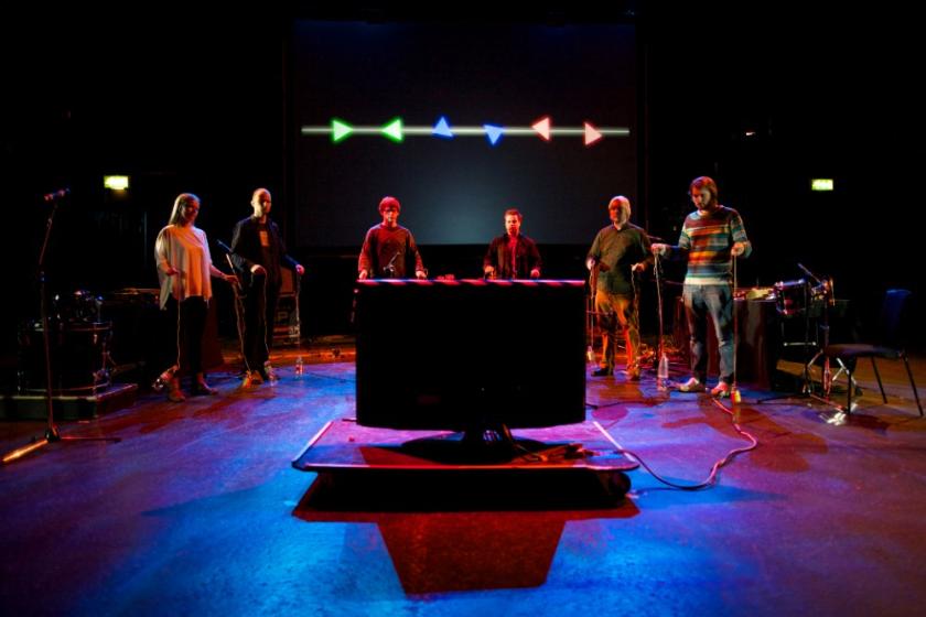 Day Two’s orchestral concert also features a jazz collaboration from 2017, with Australian jazz trio The Necks (pictured above). Improvising with the orchestra, the performance moves from a mood of ethereal stillness right through to one of rambunctious audacity. It’s quite something seeing a full orchestra improvise, with no music on their stands, though Volkov guides the players expertly through the full 45 minute set. A couple of audio recordings on this concert’s bill - also from 2014 - were particularly interesting. Cassandra Miller’s Guide for 8 voices is a sort of cannon, based on a 1968 recording of the American folk singer Maria Muldair’s singing the hymn "Guide me, O thou great Jehovah". Vocal ensemble EXAUDI performed the piece’s swooping loops with clarity and precision, but also with a tender soulfulness. The late Japanese electronic composer Takehisa Kosuga was recorded giving an electronic improvisation set at the Old Fruitmarket. The different sounds he created and played with are quite fascinating, although it is a shame this is a solely audio recording.