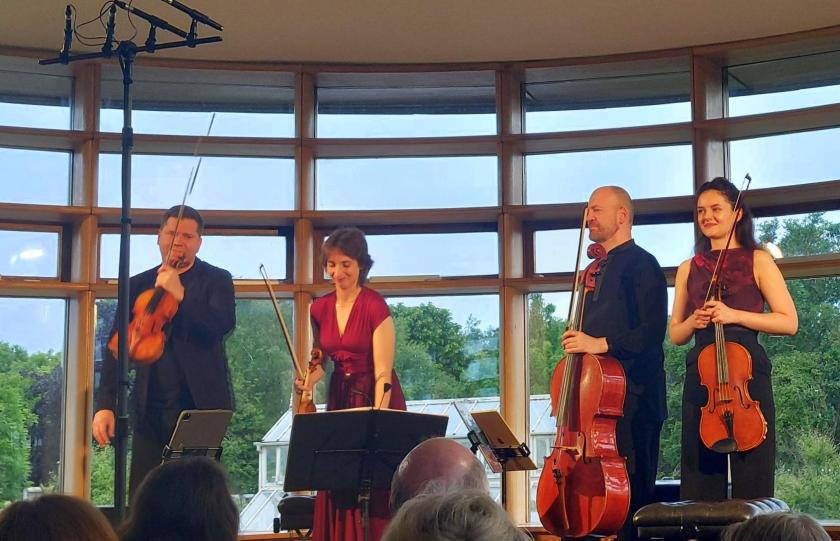 Strings in the Botanics seemed like a wonderful way to ease back into Dublin's summer life, though, and the Casals team (pictured above by Linda O'Shea Farren) excelled expectations. For the music of Boccherini and their compatriot Arriaga, they were able to engage the collection of Baroque and Classical period bows, a bonus of imaginative support from the Borletti-Buitoni Trust, through whose nurturing hands so many great musicians have passed. The beauty of Boccherini's Fifth Quartet lay in the natural-sounding ornamentions – birdsong at times to match the blackbirds in the Botanics – and a surprisingly stark, driven Menuetto. Arriaga's originality, which first struck me when the Scottish Chamber Orchestra presented his Symphony in D in the 1980s, informs the last of the three string quartets, his only works to be published in a much too short life (he died 10 days short of his 20th birthday), with striking invention especially in the finale. A hint of romantic melancholy here carried over in to the soulful Iberiana of Turina's La oración del torero, a perfect miniature to end an inventive first half.
