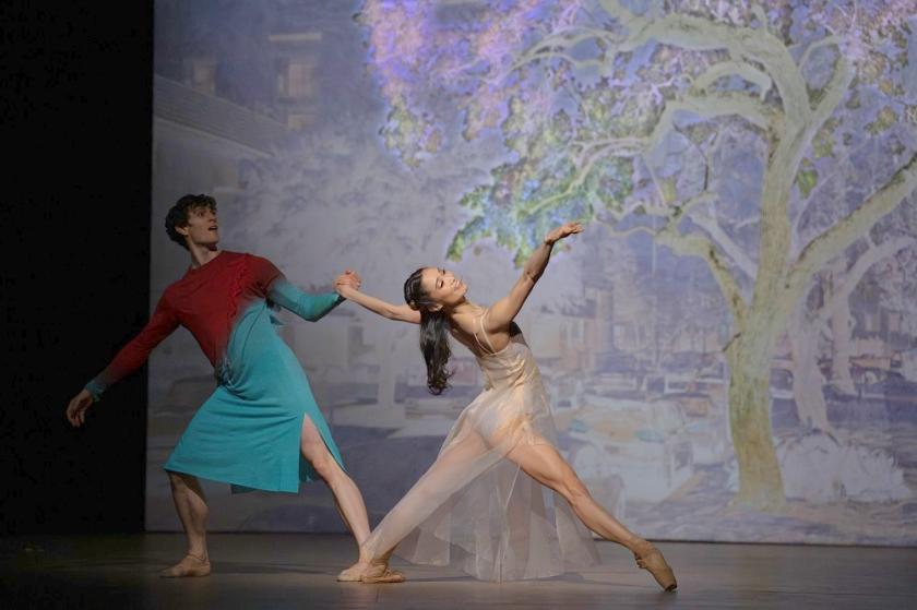 This is the one sequence where long-term musical movement was an option. "Purgatorio: Love", where McGregor eschews all the figures on the ascent of the purgatorial mountain in favour of a backstory to Beatrice, whom Dante encounters right at the top, is a more tightly-knight dance suite than the hell's-cabaret "Inferno: Pilgrim". The orchestra's response to the recorded ancient prayer (baqashot) in a Syrian synagogue - this could just as easily be an Islamic muezzin - gives us the "real" Adès, if he's anywhere to be found, in wind and brass writing. that veers between the punchy and the lyrical. It's the most original music in the score, and compels until the crucial afterlife meeting in the garden. We surely need something of the beauty and pathos in Dante's poetry here, but we get a bright banality which explodes the magic of the previous middle-eastern homages. It also works against the miracle orf Lucy Carter's lighting on Dean's over-coloured photograph of a jacaranda tree in a Los Angeles street, evolving into lovely lilac light.