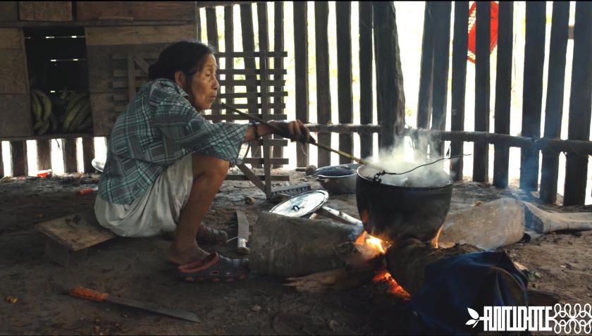 Ayahuasca is a vine growing in the forest and we see Sánchez chopping it down and boiling the stems to make a brown syrup that, judging by people’s faces as they swallow it, tastes vile. Traditionally, drinking it was a sacred ritual led by shamen and accompanied by chanting and the smoking of special herbs, but the practice was condemned as witchcraft by Catholic priests. Ironically, it’s recent revival is being spurred on by interest from the very people who once tried to stamp it out. (Pictured below: José López Sánchez participates in an Ayahuasca ritual)