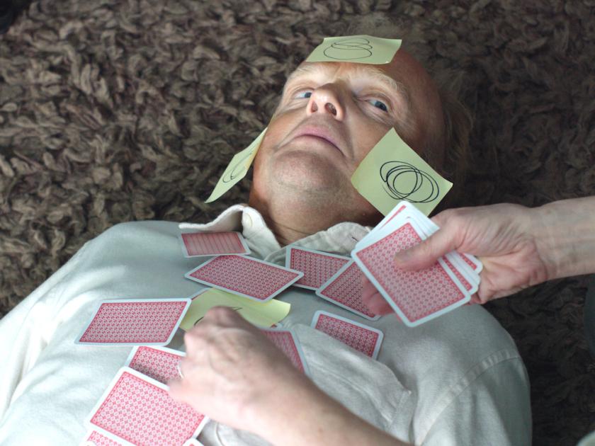 Light relief comes at the end of the film when Jones and Saskia Reeves play doctor and patient (main picture), a game devised by the artist and his young daughter Hollis. The diagnosis is “Dragon Disease” and the absurdist cure involves incantations spoken over post-it note drawings and playing cards.