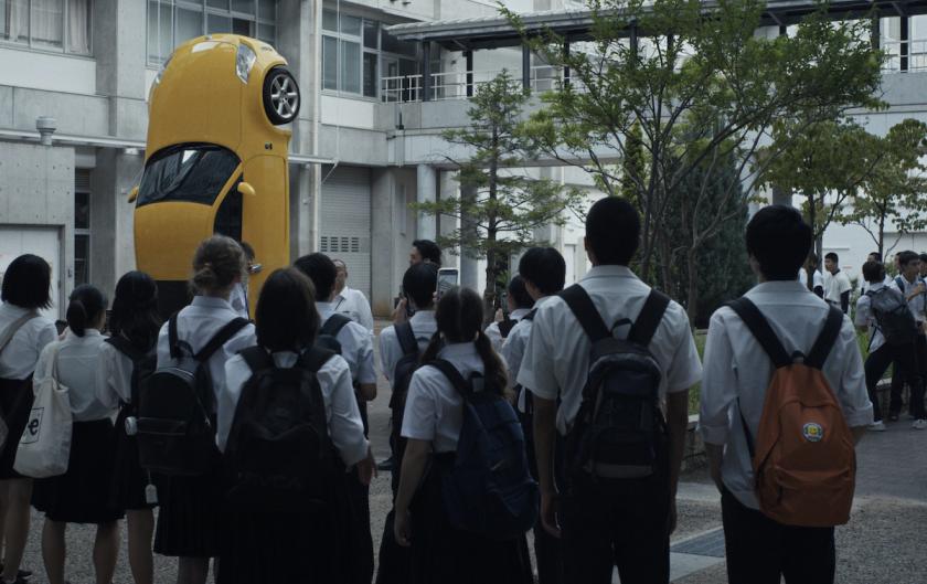 And then a couple of them – the facetious Yuta (Hayato Kurihara) and the moodier Kou (Yukito Hidaka) – pull off a scallywag move that’s positively Dada-ist: they haul the principal’s prized marigold car onto its backside in the parking lot, like a “car henge” exhibit. It’s not clear quite how they do this as it happens off-screen, like a few other social upheavals in this fable of creeping crackdowns in the land of the rising sun. But it leads to sanctions on the whole school that the kids must chafe at for the length of the movie.