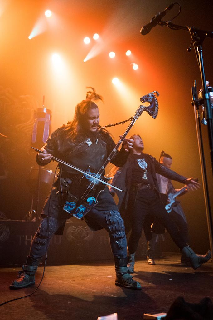 Rock has always been about more than just entertainment, and metal is no different in serving as a vehicle for collective ritual. The communality of the mosh pit, the head-banging and frenetic head-swinging fuel the ceremony. Lead vocalist Galbadrakh Tsendbaatar aka "Gala", has learned the tricks of the trade, galvanising the audience, at times a little too generically, into increased levels of frenzy – but it works. The eeriness of the throat singing, and the drone-based bowing of the horsehead fiddles (at time reminiscent of John Cale’s dirge-like bowing of the violin in The Velvet Underground), combined with the fury of the bass drum – a modern version of the sacred frame drums used to summon the spirits, and the flash of the electric lead guitar: all of these make for a dizzying mix.