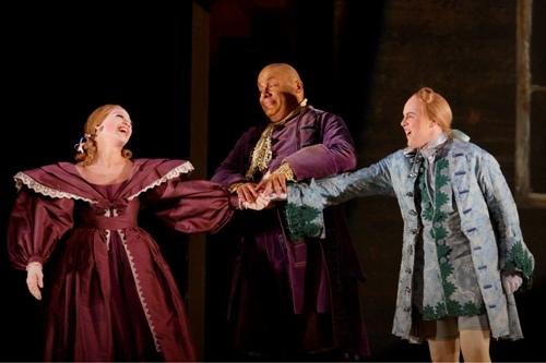 Ageing bachelor Pasquale worships the Rembrandt-or-followers portrait of his mother (hence the Dutch-genre interiors of an 18th-century gentleman's home). He's sung by Paolo Gavanelli with a baritonal bleat reminiscent of the over-rated Rolando Panerai, not much of a lower register and only an approximate assumption of the patter that should set the liveliest duet in the opera, "Cheti, cheti", bouncing. Bring back Alessandro Corbelli, true master of this style. Gavanelli's duo partner in this is the Jiminy Cricket-like Doctor Dulcamara of Jacques Imbrailo - dapper, but with too fast a vibrato to phrase his first cavatina with the Italianate breadth it needs.
