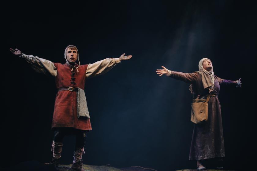 Pringle handles all this very well for the first hour of this 90-minute show. But his evocation of a olde northern England, where boys with birches beat the bounds of the parish every year and mysterious strangers dressed in black cloaks, doublet and hose can only mean trouble, only really goes so far. And not far enough. The problem with the play is that the story runs out of steam – and the playwright doesn’t know what to do with his characters. Or his increasingly apocalyptic themes. Instead of simply imitating Becket and leaving everyone in stasis, he opts for a time-twisting turn that is not only absurd, but also really irritating.