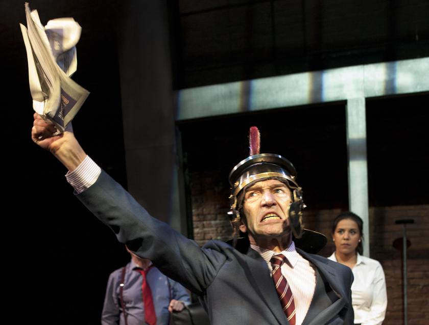 Debut playwright Mark Jagasia, former Standard and Express staffer, proves a skilful purveyor of media hard truths. As with Great Britain, there’s fun to be had matching characters with possible inspirations, though unlike Bean, Jagasia isn’t satisfied with cartoonish reenactment: Clarion’s satire is more biting, and its apocalyptic second half finds some genuine tragic power, despite an unsubtle accompanying storm and late soapy revelation. Irresponsible journalism is held to account, but, in a bleak reading of newspaper economics, the alternative is editorial dictated by a mercurial tax exile proprietor and showbiz-centric cross-branding. “I never thought I’d watch our whole world disappear,” laments foreign correspondent-turned-soused opinion columnist Verity (Clare Higgins, pictured below right); Morris deplores “the worst cuts in Fleet Street since Sweeney Todd”.