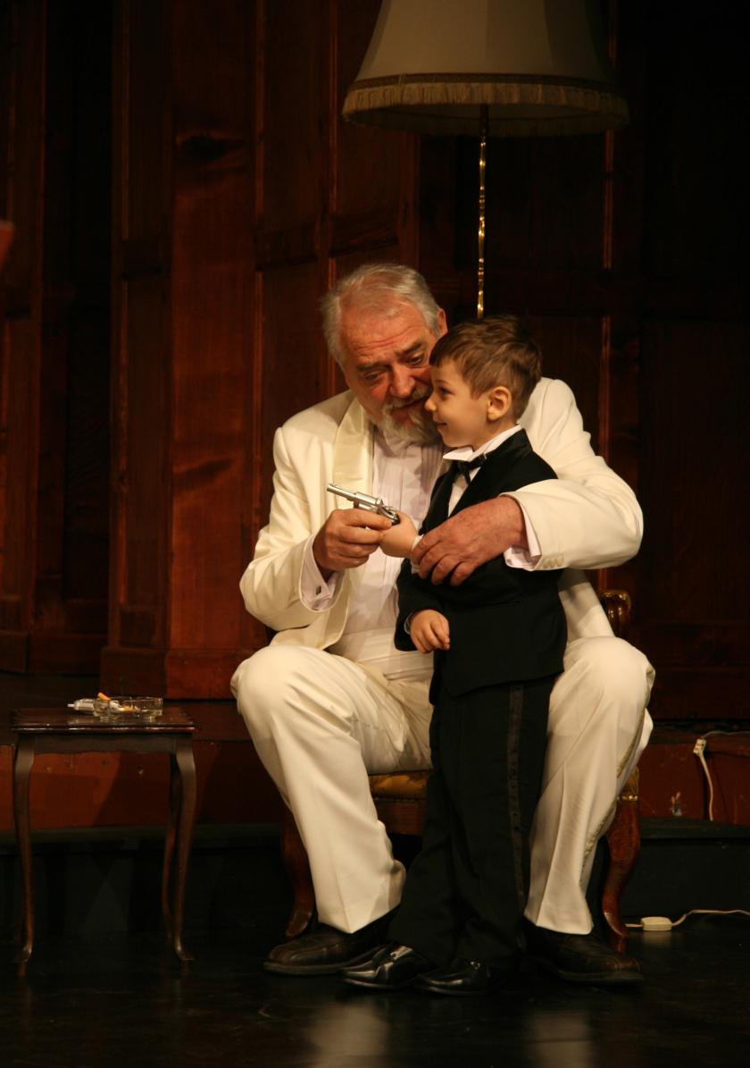This large family (pictured right) is - like so many stage families - a microcosm of society. With its four generations, numerous servants, and complex sexual cross-currents, this is like a human pyramid, topped by the winners of this world - criminals who are able to get away with it - and built on the bent backs of the losers. In a wonderfully subversive moment, it is the servants that make sure that none of their betters can leave.