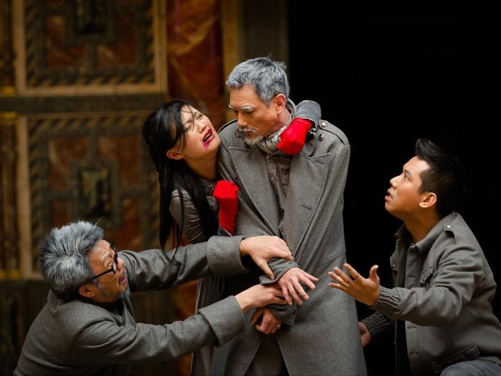 The solution the Tang Shu-wing Theatre Studio, a company from Hong Kong performing in Cantonese, initially seemed to have to devised was perfect. For the first act, in which Roman general Titus demands that a son of the captured Tamora, Queen of the Goths, be killed, and the new emperor Saturninus marries Tamora instead of Titus’ daughter Lavinia, the cast each perched on a chair, moved around it, acted beside it – but never interacted with one another. While unusual, it was also elegant and highly economical, with no scenery or special effects, and an interesting deconstruction of acting.