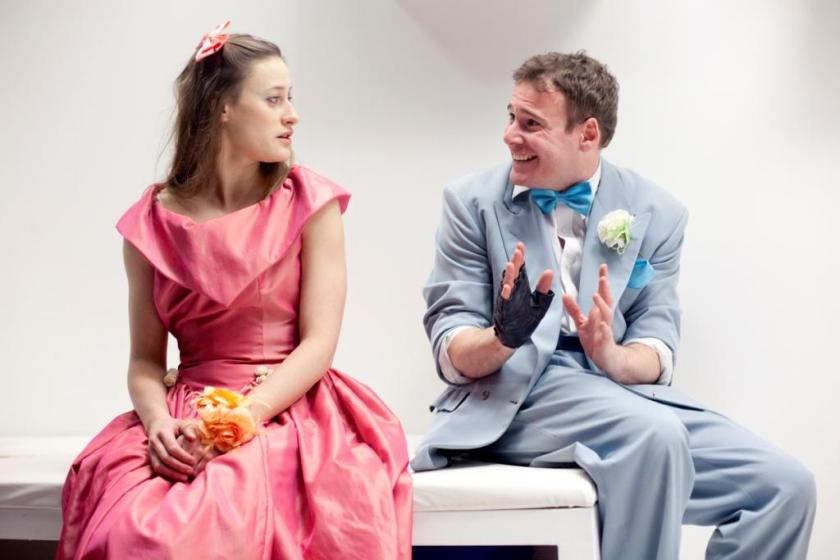 Lily Arnold's clinical design (a white box) merely highlights the sparse nature of the material, while Justin Audibert's direction is too slow. Gale and Scott change costumes for their scenes on stage. This can be of interest: particularly when the characters paint bloody wounds on each other with a perverse delight or set the mood for the next scene (to prepare for the prom episode, Scott dances into his powder-blue suit). But this technique has diminishing returns: the tenth costume change is less compelling.