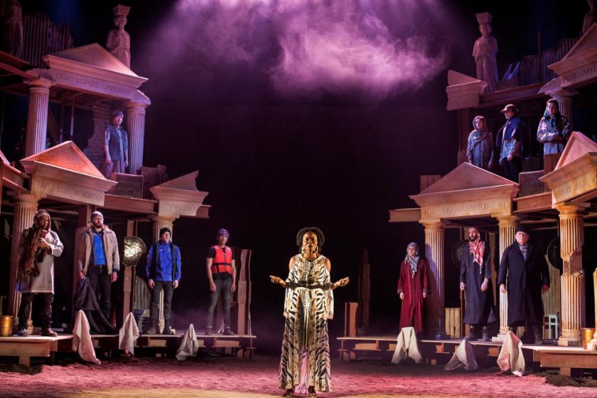 They’re fine singers, too, in Claire McKenzie’s entirely vocal/choral score – especially Amiera Darwish, role-swapping as spoil-of-war concubine Briseis and a peevish Aphrodite, with hugely expressive inflections to her vocal solos. And even if at times it feels like the music lacks a bit of variety, there’s a lot to be said for the intensity and focus McKenzie’s approach brings to the show, as well as its telling subtleties.