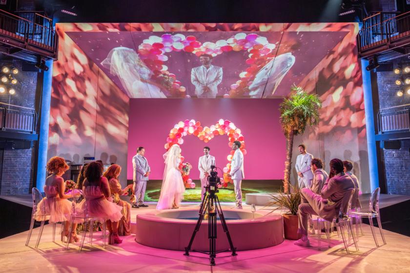 Jon Bausor’s set, something between Barbie’s pink palaces and Loro’s Bunga Bunga parties, catches the riche so nouveau that they haven’t worked out how to spend it – it’s wonderfully gaudy work, but, as much of the production succeeds in doing, it stops just short of patronising its characters.