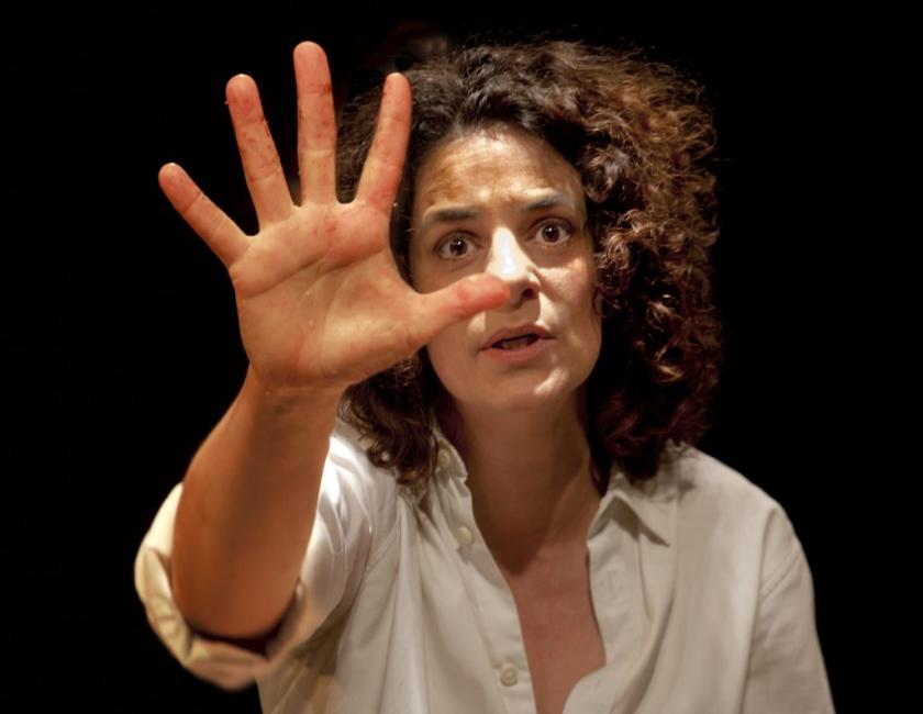 Performed by Corinne Jaber who, like her character, is German-Syrian but based in France, Oh My Sweet Land couples storytelling with cooking a she prepares kubbeh, the traditional Syrian meat and bulgar wheat snack in her Parisian kitchen. "Wheat, meat, heat, Syria," she begins, as she chops, fries, stirs and grinds her ingredients on a simple but welcoming set. She cooks for the most part with great concentration and appreciation - even romance - and often with mesmerising precision. While the onions sweat, the scent wafting through the audience, she kneads dough and slaps around chunks of meat, all the while recounting her journey from Lebanon through Syria and eventually to Jordan. Having set out to reunite with her Syrian activist lover, she returns laden with unforgettable stories of that country's refugees - and an indomitable need to make kubbeh day in, day out. (Those wanting to see a finished meal, by the way, forget it: the show gives you the process, not the result.)