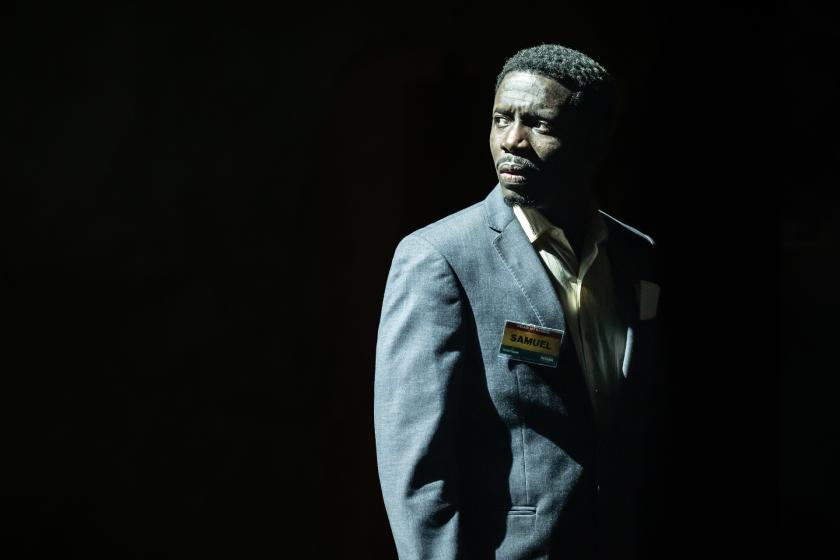 These three performances are excellent, but the play can only succeed if its protagonist is comic and tragic, present and distant, wholly realised yet fatally incomplete. Fode Simbo is tremendous as Samuel, warm when acting as our guide, cold and introspective when taking his break, grounded when explaining what the place means to him, nightmarish when the ghosts in the walls invade his thoughts. It is a testament to the writing and Fode’s grasp of its intention that Samuel never becomes a caricature or a cypher, but never loses the sense that he stands for millions in his repressed agony.