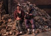 In the Stygian darkness of a bare room, a table on a low platform with a light hanging overhead starts to emerge. Then a door briefly opens at the back of the space and the figure that has entered and sat down at the table also begins to emerge. When the stage lighting goes on, this tableau out of a Bacon painting sharpens and we can properly scrutinise the man.