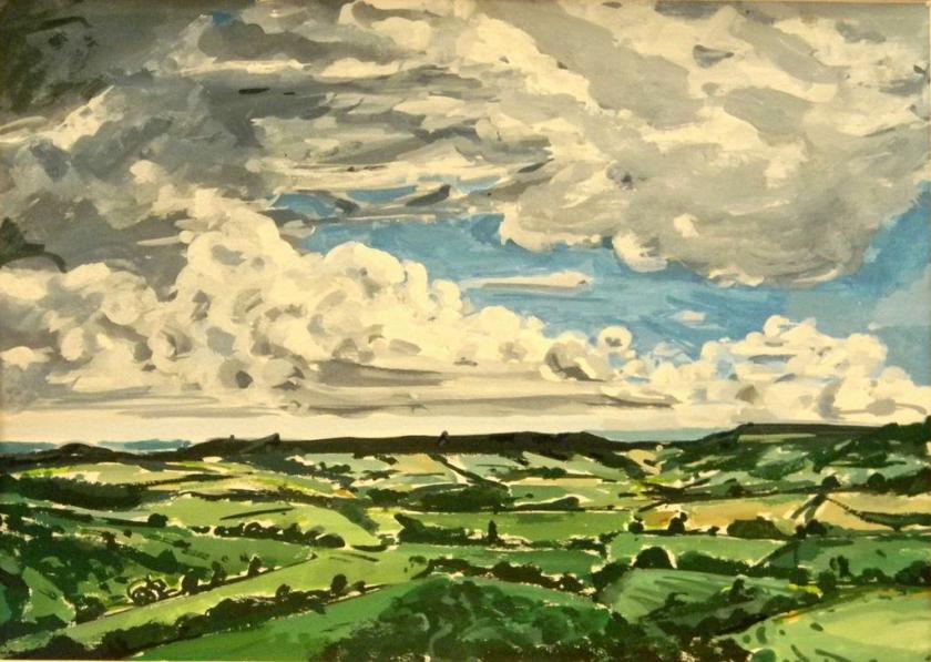 Until 23 February, 15 paintings and 15 poems hang in the downstairs space at Slader’s Yard in West Bay, Dorset. It’s their winter show, but these are summer and spring pictures, and what’s important is that they’re field paintings, not studio bound, not taken from secondary sources, but from direct contact. Contact sheets. They’re made in the field, a field work open to the elements and senses. Not just the eye, but the hairs on the back of the hand and the neck, the smell of the air, the cold in your fingers, the direction of wind. How you came to be here. I’m looking for impact, not representation.