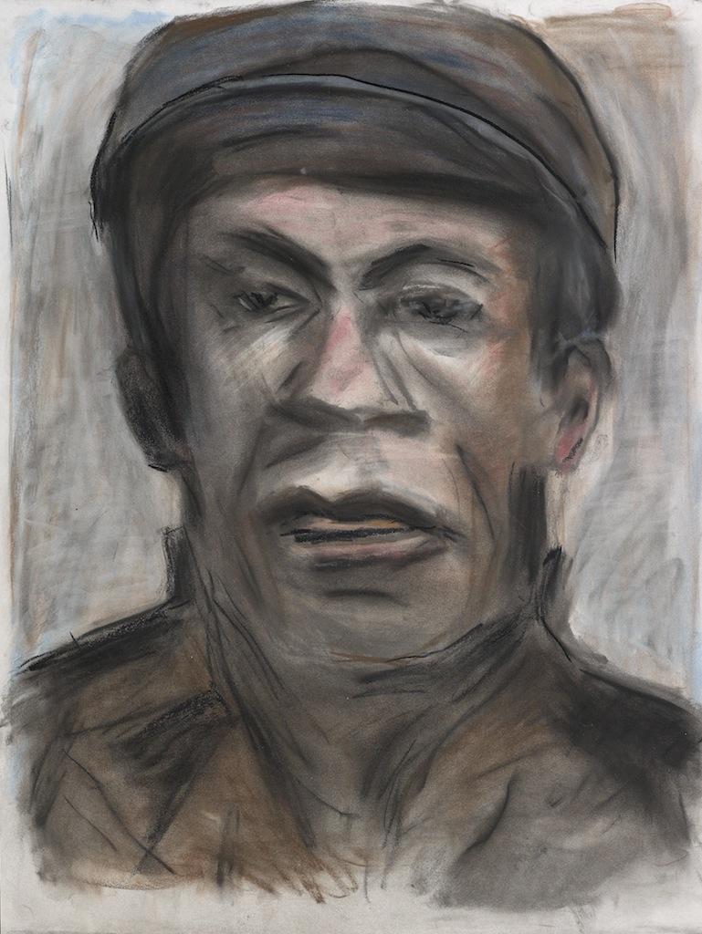 But Dylan’s portraits don’t really fit in to that knowingly cheesy sub-genre of portraiture, though you might argue they’re a masculine version of it: Dylan’s portraits are pared down, almost monochrome, and his subjects stare staunchly ahead, many with heavy-set Desperate Dan jawlines. They’re a bit like police mugshots, and you might also think of some of the American archetypes that populate the songs of Woody Guthrie and, of course, Dylan's.