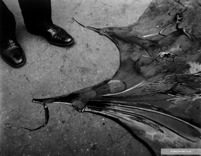 After five years, she’d had enough. Itchy feet and an affair with British artist Roland Penrose (who would later found the Institute of Contemporary Arts) brought her to London in 1939. She began taking photographs for British Vogue and, as the second world war progressed, used London’s ruined streets as a backdrop for stylish fashion shoots. She rarely photographed the devastation caused by the blitz, preferring instead to retaliate with mordant humour. The smashed typewriter in Remington silent 1940 (pictured below right) is, for instance, a wry comment on the murderous chaos of war and also a riff on the company’s claim to make noiseless machines.