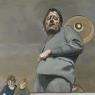 South African artist William Kentridge appears on video in his studio, twice. On the right he sits scribbling, waiting for an idea to surface. Meanwhile his alter ego stands impatiently by, trying to peek at his other half’s notes and, desperate for enlightenment, even reads a recipe out loud. The artist, it seems, doesn’t have a clue; he is as much in the dark as everyone else. A Lesson in Lethargy, 2010 offers a brief moment of humour in this relentlessly dark exhibition.