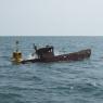 The sea is the theme uniting Simon Faithfull’s mid-career retrospective. It makes the port of Calais the perfect host for this splendid exhibition and, to put you in the mood, ideally you should make the crossing by boat. Faithfull spent six days going back and forth, back and forth on the P&O ferry between Dover and Calais. He passed the time – one and a half hours each way – sketching on his iPhone things that caught his eye, including a luggage trolley, a man reading (pictured below right), a waiting lifeboat, docking in Calais.
