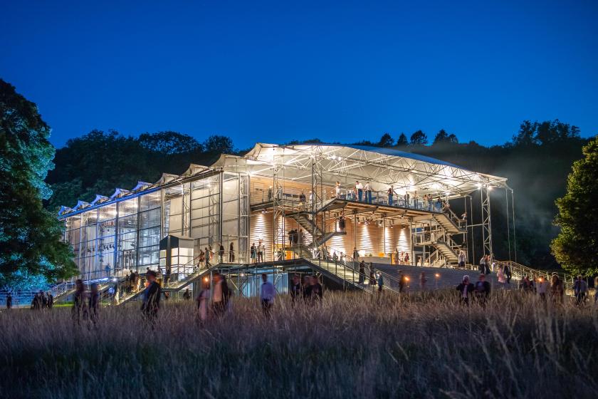 If the modern performance history of the Vespers splits into ecclesiastical and theatrical camps, then this felt like an unapologetically operatic evening. The airy yet intimate pavilion at Wormsley (pictured below by Clive Barda), where scents from the flower garden wafted in on a cooling breeze as the light of a scorching day dwindled, is an opera house, after all. And the Monteverdi celebrated here was the creator of Orfeo and L'incoronazione di Poppea rather than the genius journeyman shackled to the church’s calendar. PJ Harris’s staging, and Rob Casey’s lighting, accentuated every moment of drama as chorus and soloists moved around the stage (and sometimes stalked the auditorium as well). Bigger groups morphed into smaller units, then reassembled. Single singers, or sometimes half the choir, occupied the two upper galleries on either side of the stage. As dusk fell, spotlights in the gathering gloom pulled off a succession of visual coups.