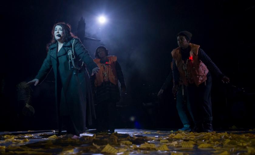 A short film followed and then finally the stage was transformed into the ribcage of a broken boat. Behind it was a screen where images of a shipwrecked Kate would occasionally appear. Usually, though, she was singing on stage – with the bony “fish people”, or under the “helicopter” light rigs, or as a ghost in a huge living-room-on-wheels where she tried to connect with her family.