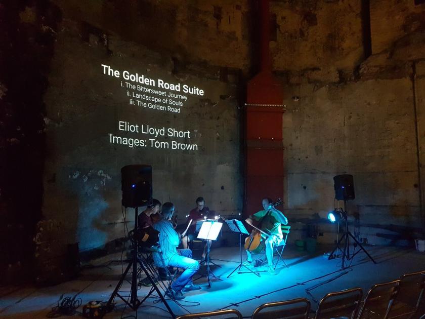 Modulus Quartet in Brunel MuseumDavies' work was perfectly proportioned, not a minute too long. That was also true of Ash Madni's Clarity from fragmented memories, fusing western quartet techniques with stylised ragas and imitations of the sarod and sitar in what came over as a dance suite with reflective interludes and a peaceful epilogue. It made for a fine twinning with Richard Norris's Bombay Nights, more complex in its evocative pre-recorded city soundscape than in the quartet's input, but a fascinating dialogue, all the same. The film this time was placed to the side, wise because its limited run on a loop wasn't synchronised with the music.