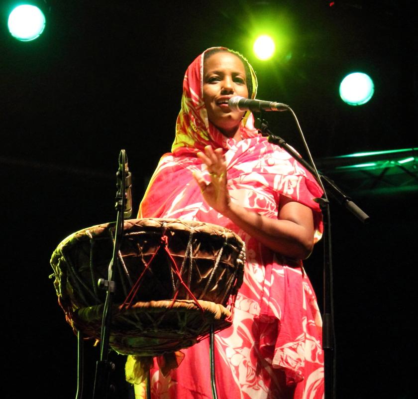 However, Noura Mint Seymali, who opened the second set with her duo partner and husband Jeiche Ould Chighaly on guitar (both pictured right), appeared to exist beyond the mistranslations. Referencing her musical heritage she begun with a religious song ‘Allah, Allah’ sung by the great Dimi Mint Abba, both evoking her late stepmother’s inflections and reinvigorating the repertoire with her own determined style.