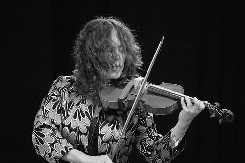 Spiro encourage the folk tag, which although it comes largely from the tunes that drive or inform the pieces, also underscores their ethos. The lack of pretentiousness; the desire to connect. Maybe they should be playing chamber music venues. But last night they were in a word-of-mouth arts club, in a former squat in Dalston, playing in a room full of bric-a-brac that looked like one of Miss Haversham’s nightmares. Things started well with “Blue Bowl” and “Ghosts”, which drifted over the audience like a slightly sad memory. Next up, “Radio Sky” and “Pop” added rock into the mix. The instruments began beginning to sound like they were having a conversation. And fiddle player Jane Harbour, all auburn ringlets and flowing turquoise coat, looked like a gypsy possessed, with melodic lines bleeding into the musical tapestry.