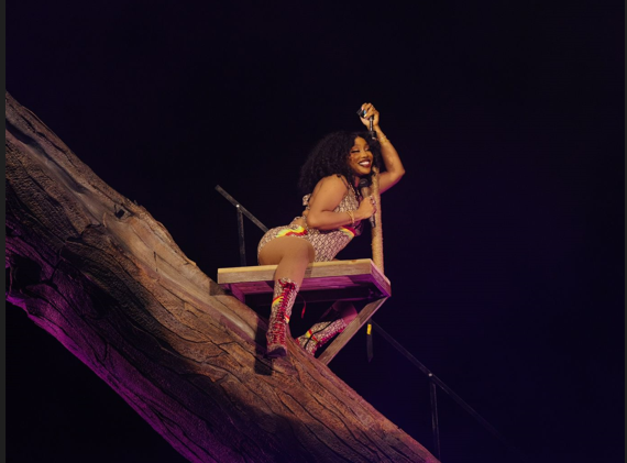 On a stage smattered with rather phallic looking stalagmites, stalactites and huge silver crystals as if the set were her very own fortress of solitude, the boundary pushing R&B singer showcased songs from both her 2017 album Ctrl and 2022’s SOS, teasing to her brand new collection Lana, asking the crowd “New album, are you ready?”