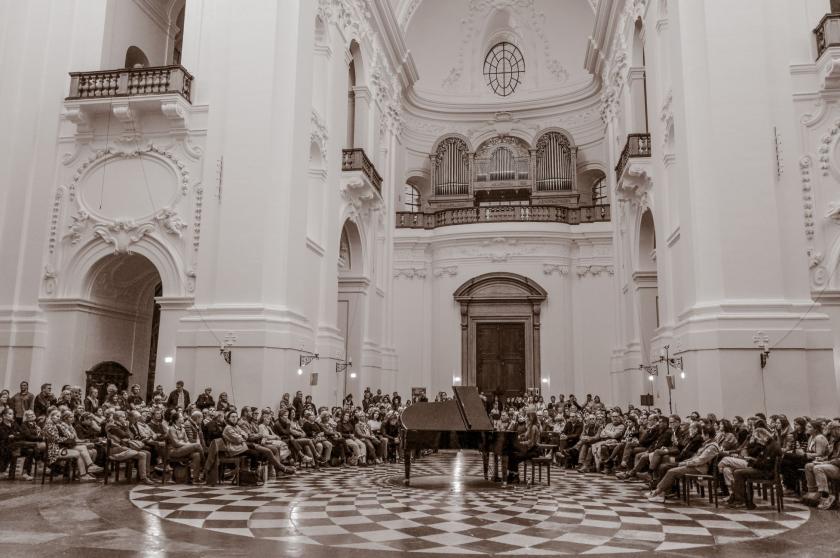 The city echoes to the music being made on the outdoor stages, such as the one on the Residenzplatz (pictured above at sunset by Henry Schulz). There are also some wonderful buildings and concert venues which the festival uses. One of the loveliest of these is the 350-seater Marionettentheater, which has a superb acoustic, and hosted, among others, the ECM duo of cellist Anja Lechner and the pianist Francois Couturier on the opening night. All the pianos I heard were Bösendorfers, and Couturier in particular seemed to have made complete peace with its warmer and gentler side.