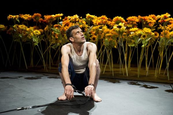 penal2Over all this the long shadow of the Holocaust and the Arab-Israeli conflict passes lightly but noticeably. Also in evidence is some unsettlingly religious music and the fact that the writhings of the Prisoner occasionally seem like the ecstasies of martyrdom. Above all, the torture machine symbolises the cold and calculating elimination of human beings so characteristic of the past century. By contrast, in this production - which is directed and adapted by Amir Nizar Zuabi - a long stretch of sunflowers offers a feeling of nature on the edge of the killing fields.