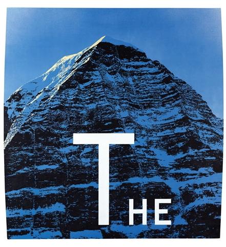 In the final room his laconic cool reaches its apotheosis in clichéd images of the American sublime, vast mountainscapes that reduce into meaningless marks as you move closer, over which float blunt, quasi-commercial pronouncements: Baby Jet, Parking for House of Blues or simply The. The images are banal, the language almost drained of meaning, yet the effect is peculiarly and paradoxically transcendent.